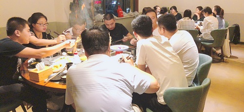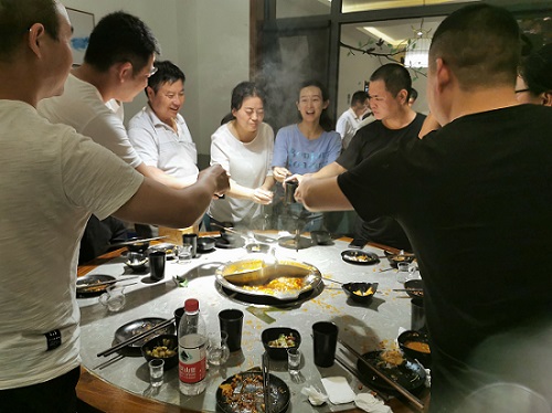 為增強公司凝聚力,提高員工對公司的認可度,并為同事間相互交流、深入了解提供機會,我公司于2019年9月10日,在西安海享撈熗鍋魚牛肉火鍋店舉行了團建活動。近期公司工作比較繁忙,大家很辛苦,通過此團建活動可以向員工傳遞發(fā)展的信心,增強員工對公司的信任和滿意。公司將在以后的發(fā)展和管理中做到有的放矢,將團建活動越做越好,讓大家輕松、快樂,釋放壓力。在此,提前祝各位員工及家人中秋節(jié)快樂!