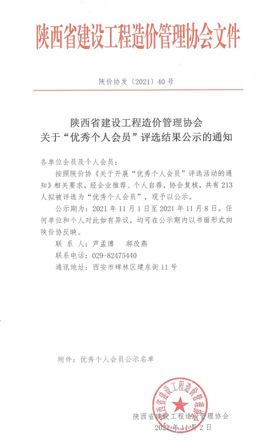 2021年11月2日,陜西省建設工程造價管理協(xié)會發(fā)布的《關(guān)于“優(yōu)秀個人會員”評選結(jié)果公示的通知》,213位造價從業(yè)人員被評為“優(yōu)秀個人會員”。本次評選活動不僅提高企業(yè)工程造價技術(shù)人員的綜合水平,還充分發(fā)揮了各造價企業(yè)對工程造價工作的大力支持和對優(yōu)秀工程造價技術(shù)人員的肯定。