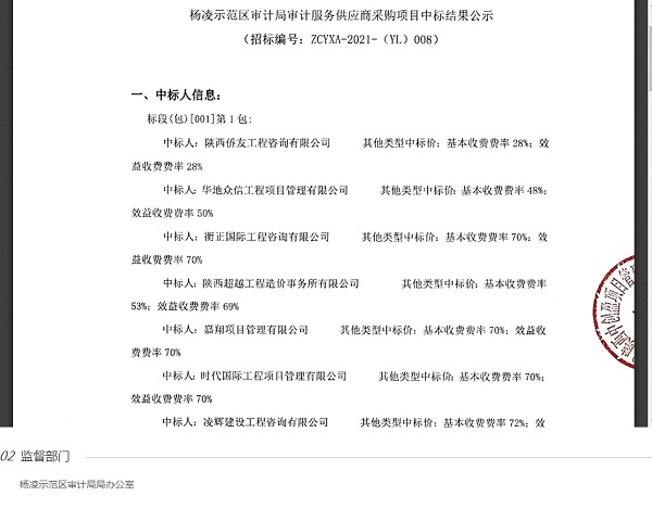 恭喜我司在楊凌示范區(qū)審計局審計服務(wù)供應(yīng)商采購項目 中標(biāo)[001]第1包標(biāo)段