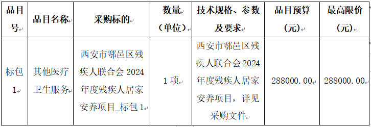 標(biāo)包1(西安市鄠邑區(qū)殘疾人聯(lián)合會(huì)2024年度殘疾人居家安養(yǎng)項(xiàng)目_標(biāo)包1):