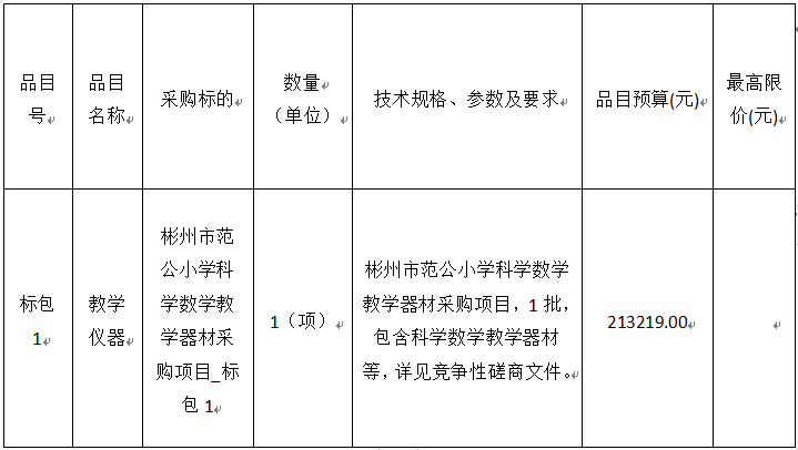 標包1(彬州市范公小學(xué)科學(xué)數(shù)學(xué)教學(xué)器材采購項目_標包1):