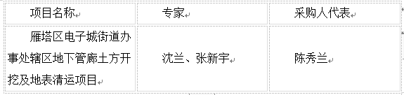 雁塔區(qū)電子城街道辦事處轄區(qū)地下管廊土方開挖及地表清運(yùn)項(xiàng)目采購項(xiàng)目已于 2019年10月10日進(jìn)行 競爭性磋商 ,現(xiàn) 磋商 工作已結(jié)束,根據(jù) 磋商小組 的評審結(jié)論和采購人 “成交復(fù)函” ,現(xiàn)將 磋商成交 結(jié)果公告如下: