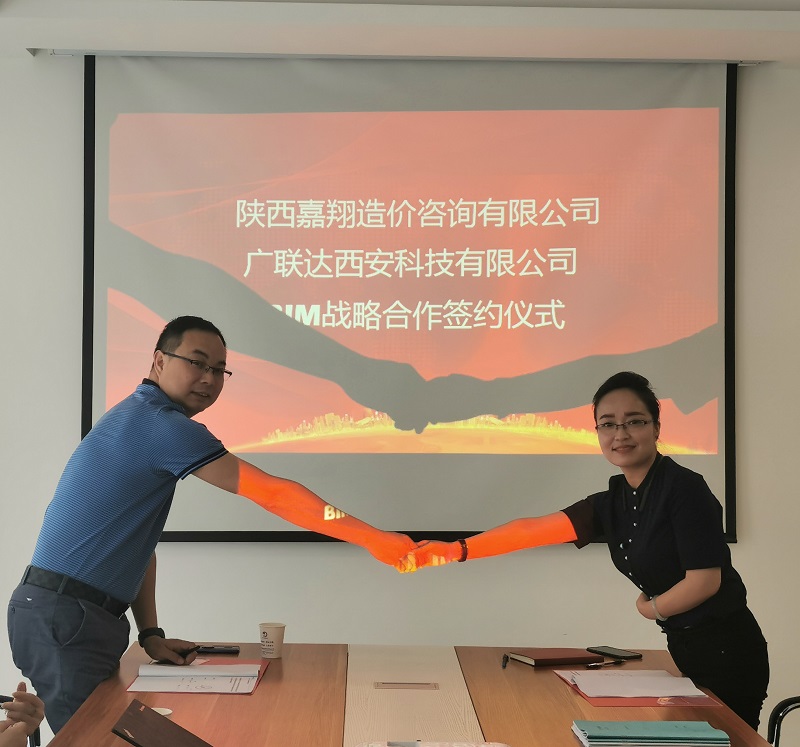 2019年7月24日,陜西嘉翔造價咨詢有限公司與廣聯(lián)達西安科技有限公司主要管理團隊匯聚一堂,會議圍繞“合作、交流”為主題,就中介咨詢企業(yè)BIM新業(yè)務開發(fā)、BIM技術服務咨詢團隊組建、廣聯(lián)達BIM產(chǎn)品支持等內(nèi)容友好磋商與交流,進一步達成一致意見,共同推進BIM技術在中介咨詢企業(yè)發(fā)展和全過程咨詢服務中的應用,并簽署了《BIM業(yè)務發(fā)展戰(zhàn)略合作協(xié)議》。