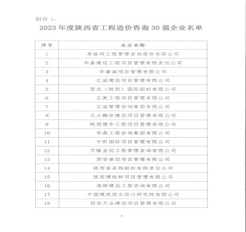 2023年度 陜西省工程造價咨詢“ 企 業(yè)”榮譽稱號