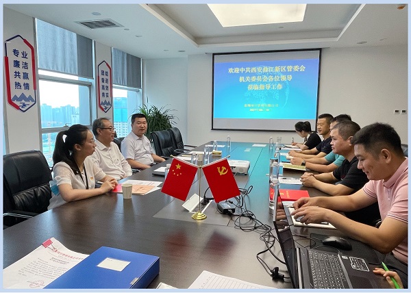 2021年8月19日下午,西安曲江新區(qū)管委會機關(guān)黨委書記、組織人事局副局長劉海旭、曲江新區(qū)團工委書記、組織人事局副局長鄭群凱、組織人事局干事李倩,到公司檢查、指導(dǎo)、調(diào)研黨建工作,公司董事長黃巧梅女士及領(lǐng)導(dǎo)班子,黨員寇輝、田飛龍同志等一行人陪同。