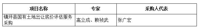 鎮(zhèn)坪縣國(guó)有土地出讓底價(jià)評(píng)估服務(wù)采購(gòu) 采購(gòu)項(xiàng)目已于2019年11月01日 進(jìn)行 競(jìng)爭(zhēng)性談判 ,現(xiàn) 談判 工作已結(jié)束,根據(jù) 談判小組 的評(píng)審結(jié)論和采購(gòu)人 “成交復(fù)函” ,現(xiàn)將 談判成交 結(jié)果公告如下: