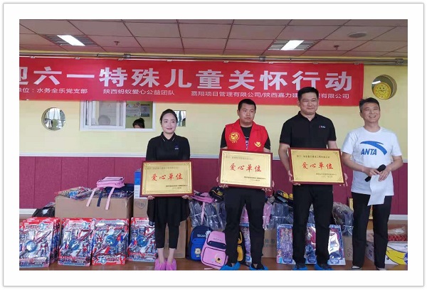 本次活動(dòng)受到西安市蓮湖區(qū)孤獨(dú)癥兒童康復(fù)訓(xùn)練中心(藍(lán)海豚)、陜西水務(wù)集團(tuán)全樂(lè)養(yǎng)老服務(wù)股份有限公司對(duì)我們的大力支持及肯定,感謝我公司帶給孩子們的禮物和對(duì)孩子們的用心陪伴,并授予愛(ài)心獎(jiǎng)牌。