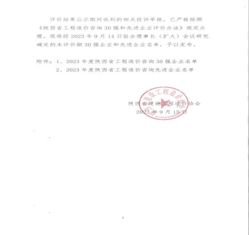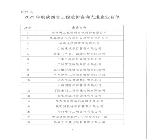 2023年度 陜西省工程造價咨詢“ 企 業(yè)”榮譽稱號