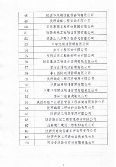 2021年8月25日陜西省建設(shè)工程造價管理協(xié)會發(fā)布了《2021年度工程造價咨詢30強企業(yè)與先進企業(yè)名單》的公示,嘉翔項目管理有限公司位列第37名,榮獲“陜西省工程造價咨詢先進企業(yè)”的稱號。